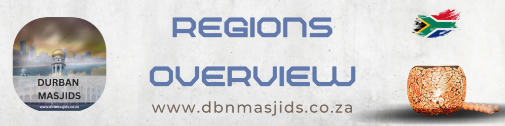 | LOCKHAT MASJID | MASJID | BEREA | DBN OVERPORT | 12:45 | Ahmedia Pl, Westridge, Berea (160 Vusi Mzimela Road) | CLICK HERE | |||